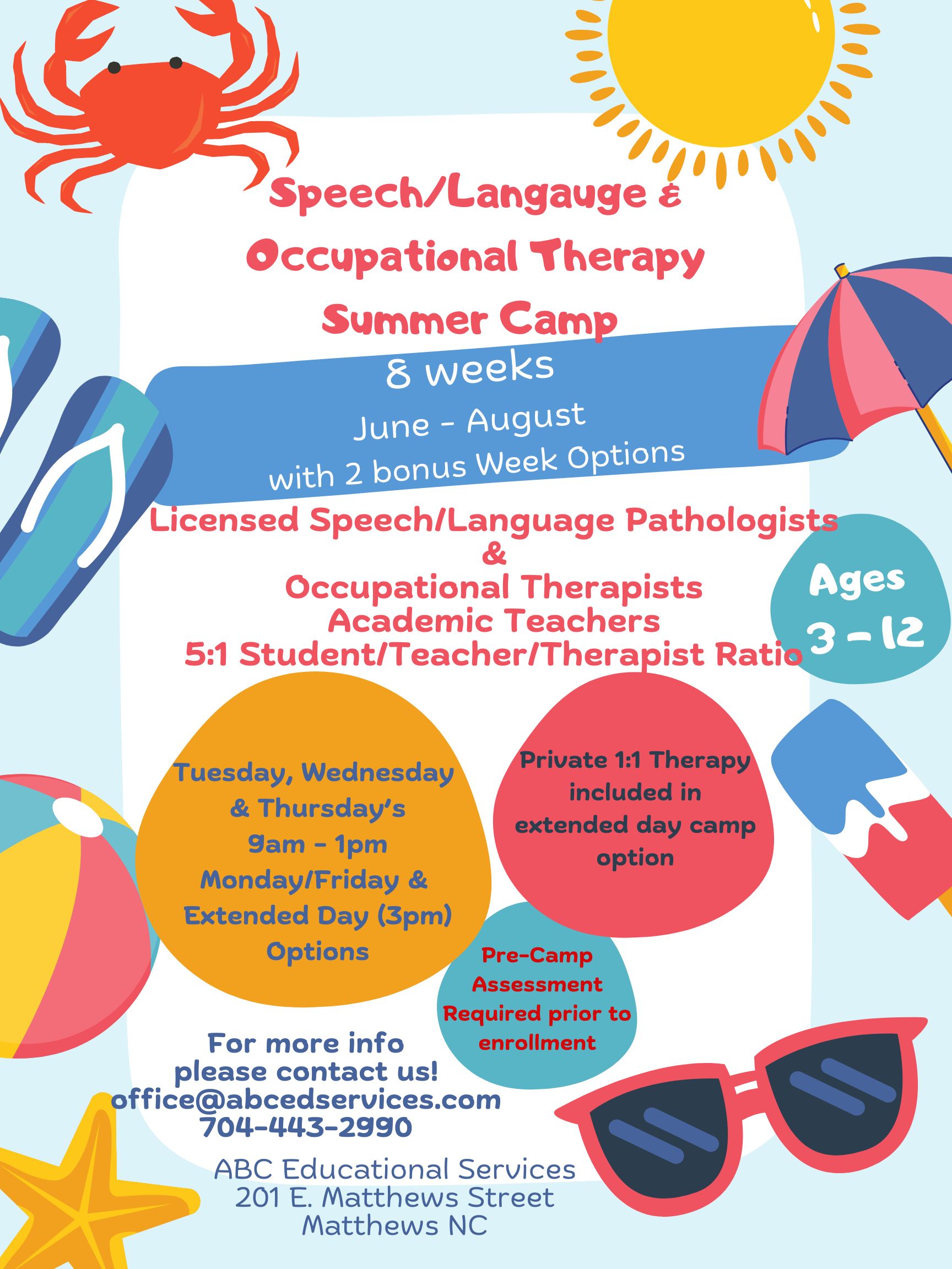 Your child can maintain academic and speech and language skills gained during the school year by enrolling in our fun summer camp experience for children ages 2 years through 9 years. Our language stimulation summer program includes: